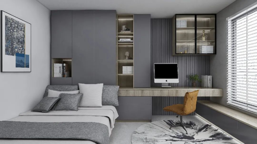 淺色有上升感,深色有下墜感。層高低的空間,建議頂部用淺色,地面和家具用深色,強(qiáng)行拉開天花板與地板的視覺距離。