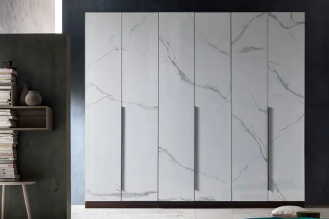 還有在“高定”中風頭無兩的巖板,由于可以做到3mm厚度的工藝突破,近來被大量應用在定制家具的飾面中,甚至還推出了“全巖板”家具。巖板的“大薄輕”以及紋理色澤的可塑性、性能的環(huán)保性,都讓其在高端定制中靈活應用,彰顯多元的設計表達。