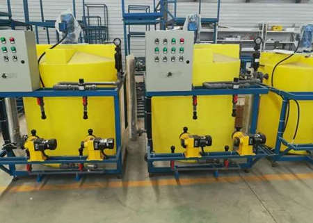 • 11-112022加氨加藥裝置原理(全自動pac加藥裝置用加藥系統分為溶液箱、攪拌箱(帶攪拌器)、計量泵、液位計、電控柜、管路、閥門、安全閥、止回閥、壓力表、過濾器、底座、扶梯根據具體實際情況組成。